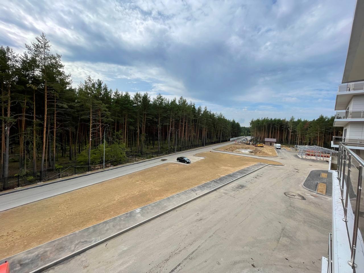 С начала строительства рабочие обустроили съезд с Судогодского шоссе с парковочными карманами, которыми уже пользуются автовладельцы. На проезжей части устроено основание из песка и щебня, уложен геотекстиль и нижний слой покрытия, а тротуарная часть заасфальтирована уже на треть.